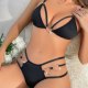This lingerie set is designed for those who want to make a bold statement. The bra features a deep V-neckline with intricate strap detailing, providing both support and style. The matching thong has a unique back design with crisscross straps that accentuate your curves. The heart-shaped embellishments on the front add a touch of playfulness, making this set perfect for special moments or everyday confidence.