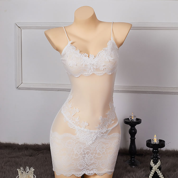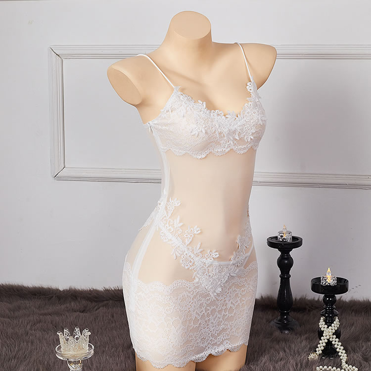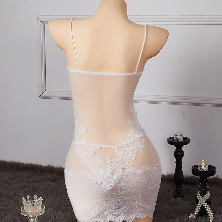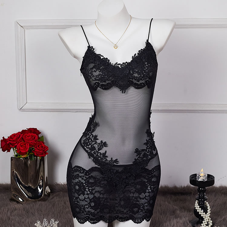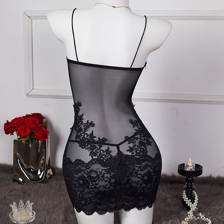 This eye-catching pink lingerie dress blends bold color with delicate lace detailing for a look that’s both daring and feminine. Featuring a deep V-neckline with floral lace trim and thin spaghetti straps, it hugs your curves with a form-fitting silhouette. The sheer mesh fabric is accented with intricate lace at the hem and side panels, adding texture and romance. Perfect for making a statement during intimate moments or when you want to feel confident and alluring.