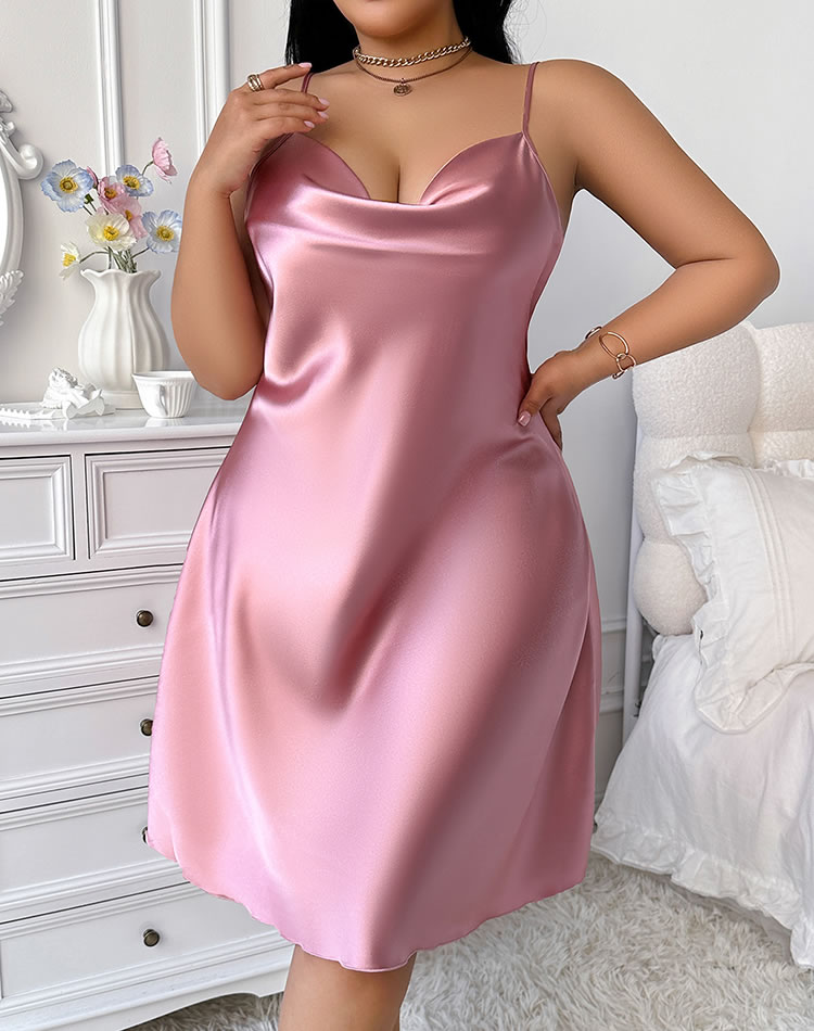 This charming pink satin slip dress is a perfect choice for those who appreciate both comfort and style. The soft, smooth fabric feels delightful against the skin, ensuring you stay comfortable all night long. The deep V-neckline and spaghetti straps accentuate your natural curves, making it an ideal option for relaxing evenings or special occasions.
