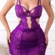 Designed for bold expression, this purple lace and mesh ensemble blends structure with sensuality. The bra features intricate lace patterns and a central cross-over strap that adds drama and support. Paired with a sheer high-rise skirt that hugs the hips and accentuates the figure, it offers both coverage and daring transparency. The minimalist back design with a soft band gives a clean finish, making it ideal for intimate moments or fashion-forward nights.