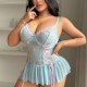 This dreamy babydoll features soft powder-blue mesh adorned with delicate floral embroidery and sweet pink lace trim along the neckline. Side ribbon lacing lets you adjust the fit around your waist for a personalized silhouette, while adjustable straps ensure all-night comfort. The flouncy skirt adds playful movement — perfect for date nights, self-care moments, or whenever you want to feel gently glamorous without trying too hard.
