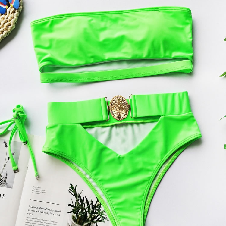 Pack your bags for an adventurous rendezvous in this exclusive bikini set featuring a strapless neckline, removable adjustable spaghetti straps, an underboob cut-out with an elastic hemline, pull on tube top, and a matching high waisted bottom with a cheeky cut back.