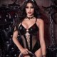 This striking bunny-inspired bodysuit combines bold design with sensual flair. Crafted from a high-shine black fabric, it features mesh inserts that add contrast and drama, while the lace-up front creates a customizable fit. The back and open cutouts highlight your silhouette, making it a standout choice for themed parties or role play. Paired with matching bunny ears, it delivers a confident, commanding presence with every step.