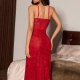 This floor-sweeping lingerie dress features a lace bodice with soft support and delicate floral embroidery across the sheer skirt. A satin waistband with a heart-shaped clasp cinches the silhouette, while the high side slit adds drama and movement — perfect for romantic evenings or styled boudoir sessions.
