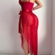 This elegant white lingerie set features a structured bustier top with delicate lace trim and a bow accent at the front, offering a romantic silhouette. Paired with a flowing sheer tulle overlay that drapes gracefully from the waist, it creates a soft, ethereal look. The high-cut design enhances movement and confidence, making it ideal for special moments or intimate evenings.
