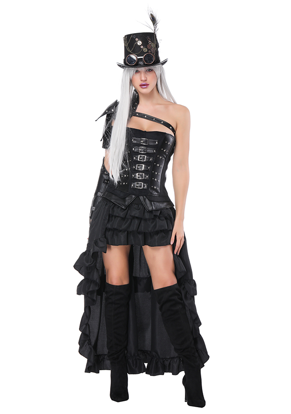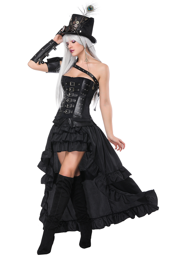 - Sexy steampunk corsets features a one shoulder, rivets accent, front retro metal buckles closure, four lines criss-cross metal chain on the right sides, and lace-up back for Cinching.