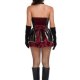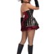 Set sail with bold style in this playful pirate-inspired costume that blends adventure and flair. Featuring a mini dress in deep red with gold trim and a skull-and-crossbones accent, the outfit includes a flared skirt with black and metallic stripes and a matching red bow at the back. Paired with a tricorn hat adorned with red ribbons, long gloves, it’s perfect for Halloween parties, themed events, or cosplay. ( Fishnet stockings, and knee-high boots not included)