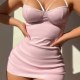This soft pink chemises blends a smooth fabric with a flattering silhouette that hugs the body from bust to hips. The front features structured support with a deep V-neckline and thin crisscross straps that add a touch of elegance. The back is designed with an intricate lattice pattern of horizontal and vertical bands, creating a striking contrast between coverage and exposure. Ideal for those who love a balance of sweetness and boldness, this piece stands out with its clean lines and playful cut-outs.