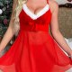 This festive red dress brings holiday cheer with a bold and flirty design. The deep V-neckline is framed with soft white feather trim and a matching bow, adding a sweet yet daring touch. Thin straps support the fitted bodice, while the flowing skirt creates a playful silhouette. Ideal for Christmas celebrations, intimate evenings, or themed gatherings, it’s a standout choice for anyone wanting to embrace the season in style.