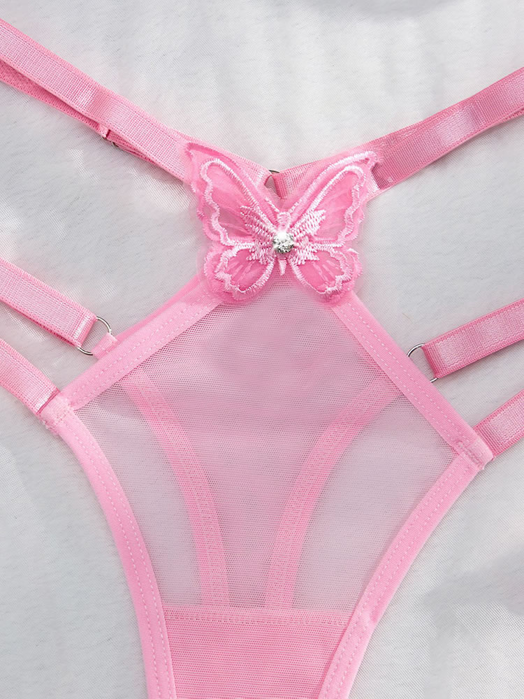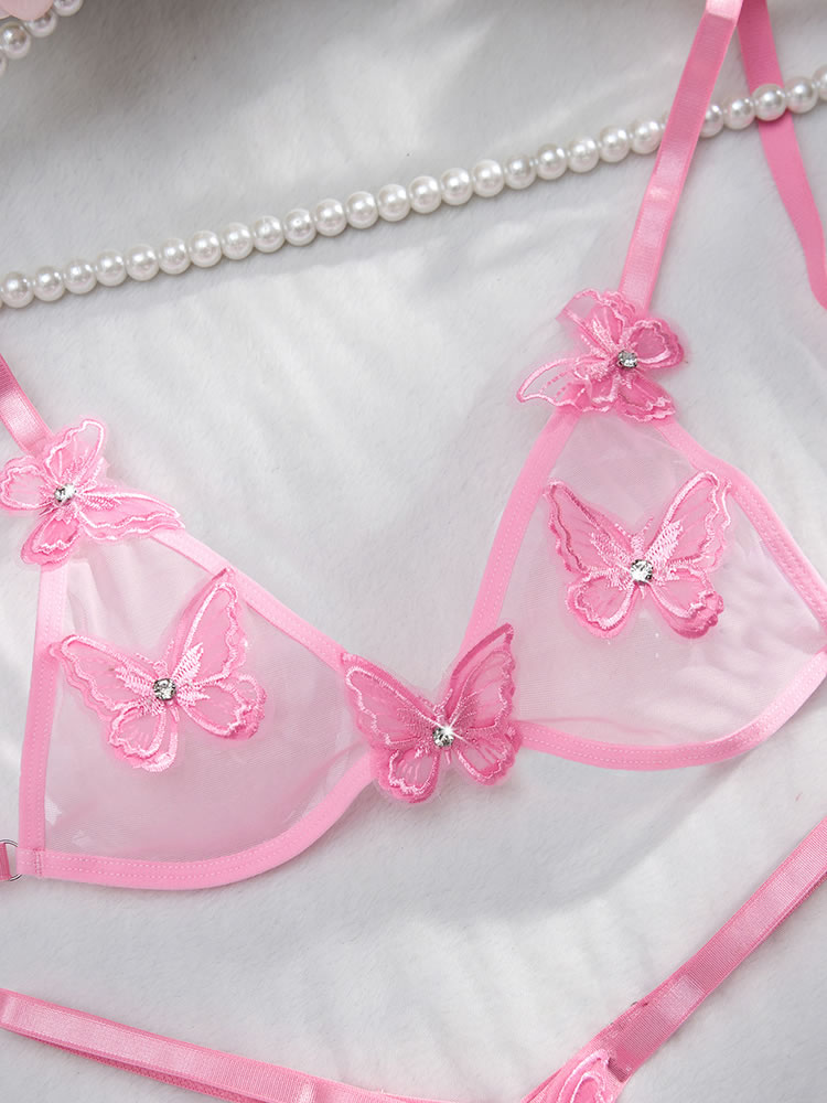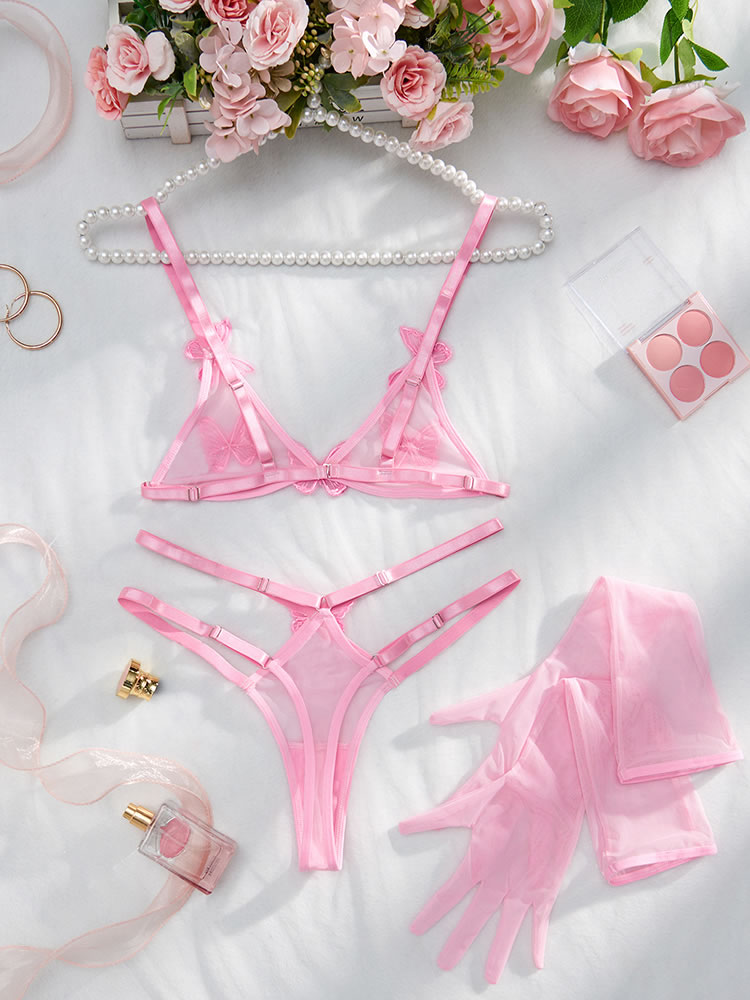 Wow, that sounds absolutely alluring! The delicate butterfly applique and sheer mesh cups create such a tantalizing look. Plus, the matching thong panty and gloves add a touch of elegance and playfulness. I can imagine how stunning you'd look in it!