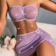 Indulge in the glamorous charm of this lilac butterfly lingerie set. The strapless bralette features a sweetheart neckline with intricate butterfly embellishments and sparkling rhinestones, providing a blend of elegance and modern edge. The ruched design adds texture and shape, while the chain detail enhances the overall allure. The matching high-waisted skirt complements the set with its sheer mesh fabric and asymmetrical hem, adorned with delicate butterfly accents for an added touch of glamorous . Perfect for both intimate moments and special occasions.