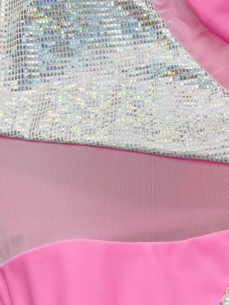 Shine bright in this glamorous white one-piece swimsuit featuring sparkling details. The unique cutouts and asymmetrical design add a touch of edginess, while the shimmering accents catch the light beautifully. Perfect for making a statement at the beach or poolside.