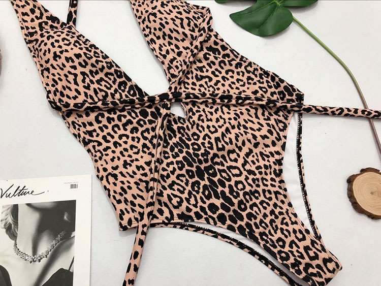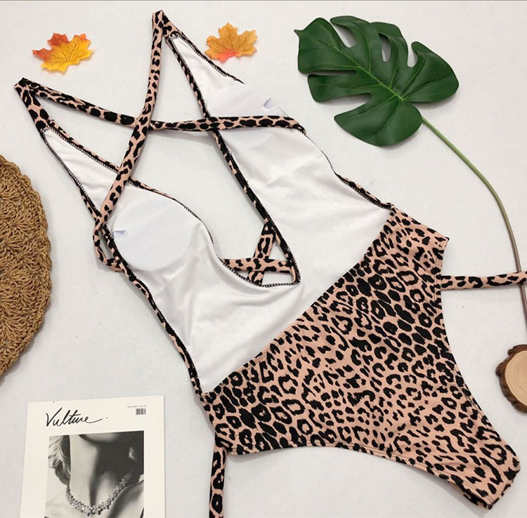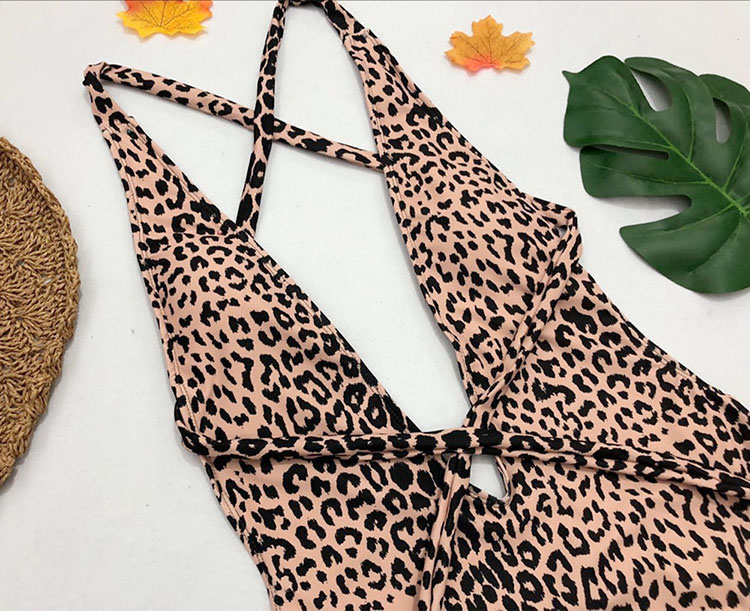 It's time to rep-style in the sun with this exclusive swimsuit featuring a leopard print, a plunging neckline, criss-cross straps, flattering high cut sides, an open back, and a cheeky cut back.