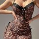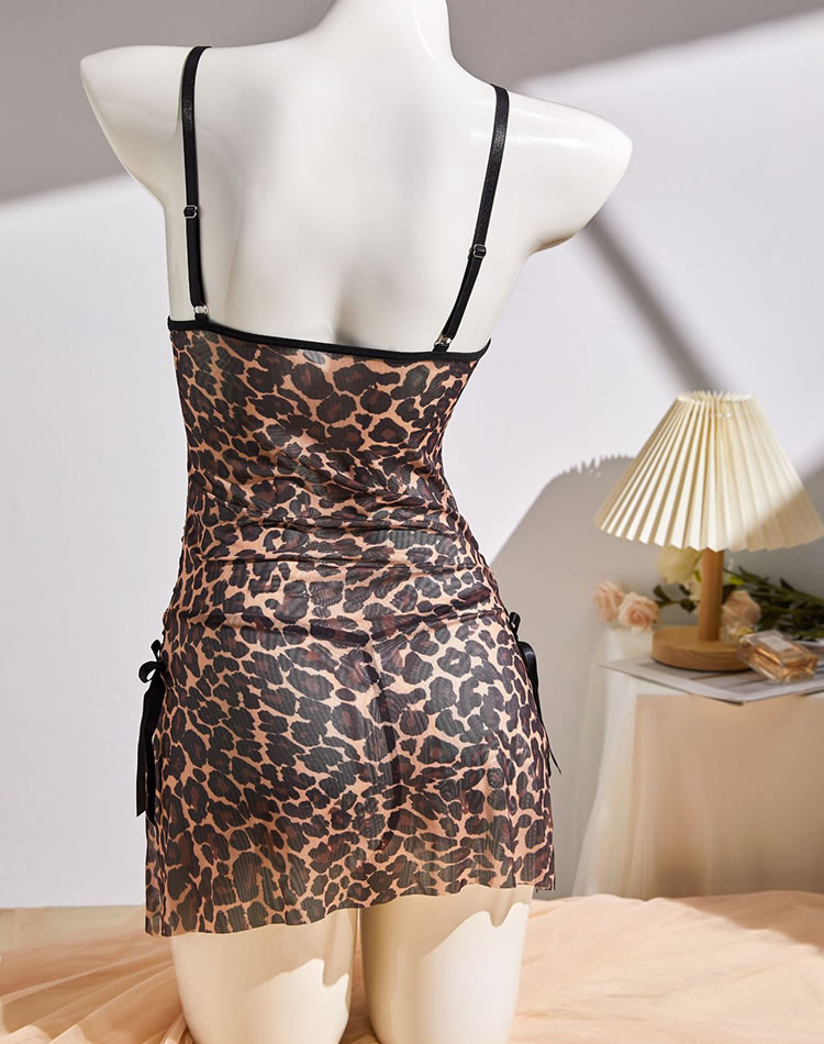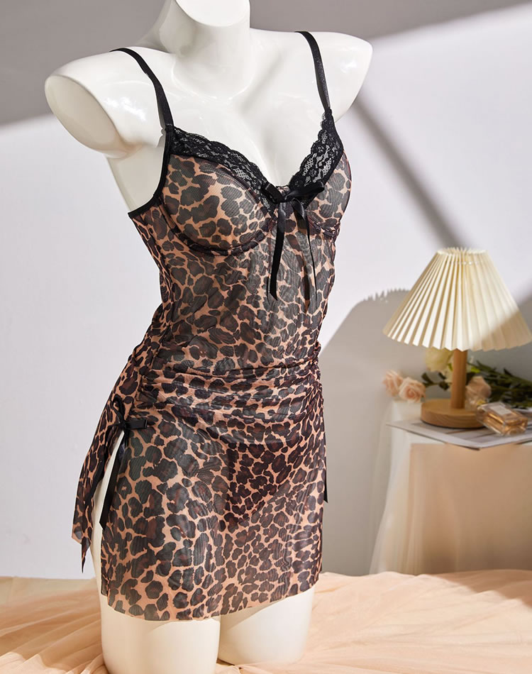 This sleek leopard-print slip dress combines bold pattern with sultry detailing for a confident look. Featuring thin adjustable straps, a lace-trimmed neckline with a front bow tie, and side satin bow accents on the skirt, it’s designed to flatter the silhouette. Made with a smooth fabric that drapes beautifully, this piece is perfect for making a statement at night or adding edge to your everyday style.