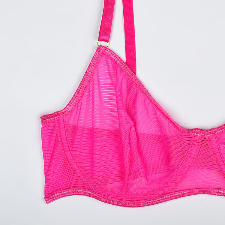 Discover your daring side with this lingerie set that invites you to embrace your allure. Flaunt your radiance in a stunning bra set adorned with sheer mesh underwire cups, adjustable spaghetti straps, a convenient hook-and-eye back closure, and a matching panty with a playful cheeky cut back. Unleash your inner confidence and shine bright in every moment.