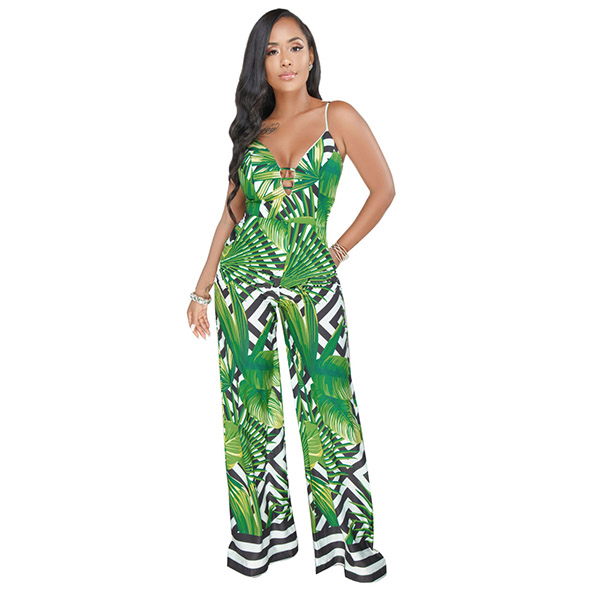 One Piece Sexy Sling Printing Wide-leg Jumpsuit Rompers