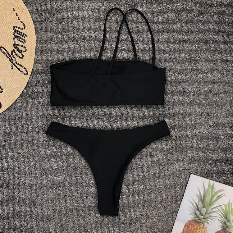 Go on a destination vacation to Cali in this bikini featuring a one shoulder bandeau style top, a pullover style, matching bottoms with an open side, high cut sides, a cheeky cut back.