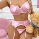 This adorable pink lingerie set is made for lovers of all things cute and charming. Featuring soft mesh fabric and oversized heart appliqués on the bra and thong, it brings a whimsical touch to your intimate wardrobe. The matching garter straps add a classic flair, perfect for pairing with thigh-highs. Designed with delicate lace trim and adjustable straps, this set blends sweetness with a bold silhouette—ideal for Valentine’s Day, date nights, or when you want to feel extra loved.