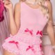 This charming pink chemise combines innocent aesthetics with flirty details. Crafted from soft, sheer mesh, the sleeveless slip features a tiered skirt adorned with delicate lace ruffles and vibrant satin bows. The backless design showcases a sexy lace-up ribbon detail that allows for an adjustable fit, adding a touch of coquettish allure. Perfect for those who love a feminine, doll-like look with a playful twist.
