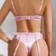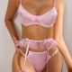 This bold lingerie set combines smooth satin fabric with delicate sheer mesh accents for a modern and daring look. The underwire bra features a deep V-neckline and a central bow detail that adds a touch of romance. Paired with a high-cut garter that includes a layered tulle trim and adjustable garter straps, it creates a cohesive and edgy silhouette. Designed to highlight curves, it’s ideal for intimate evenings or themed occasions.
