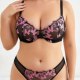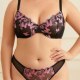 This plus-size lingerie set blends sweet charm with bold confidence. The black sheer mesh bra features delicate pink butterfly embroidery along the scalloped edges, offering light support with adjustable straps. Paired with a matching thong that showcases the same whimsical pattern at the front, it’s perfect for adding a touch of fun to your intimate wardrobe.