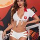 Step into the spotlight with this playful nurse-inspired lingerie set, designed to turn heads and spark imagination. Featuring a cropped top with a bold red collar and matching trim, paired with high-cut bottoms that include stylish cut-out details for a daring look. The ensemble is completed with a classic nurse cap adorned with a red cross, perfect for themed events or intimate moments. This costume combines fun flair with a touch of sass, making it an ideal choice for parties or role-play.