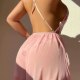 This charming one-piece lingerie features a deep V-neckline with delicate lace edging and bold red lip and heart motifs printed across the sheer fabric. The bodysuit includes thin spaghetti straps and a soft, flared skirt that adds movement and romance. A small bow at the waist ties it together with a sweet touch. The back is designed with crisscross straps for a secure fit and a hint of allure. Perfect for those who love fun, expressive styles with a feminine twist.