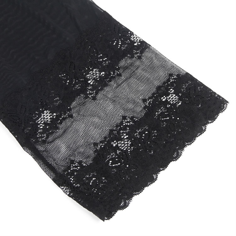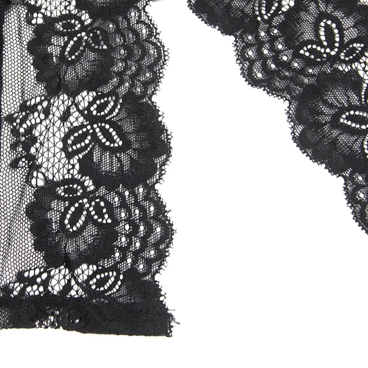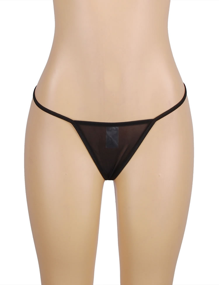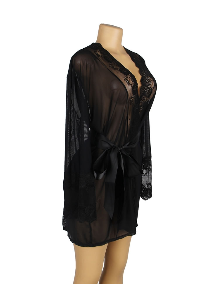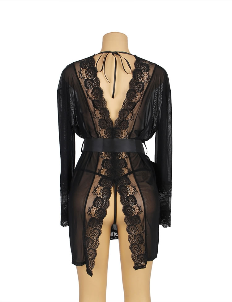 Plus Size Black Lace Sexy Hollow Out Back Design Robe Lingerie with Panties