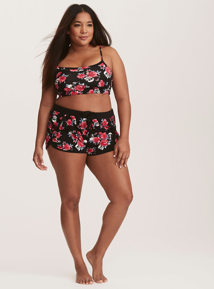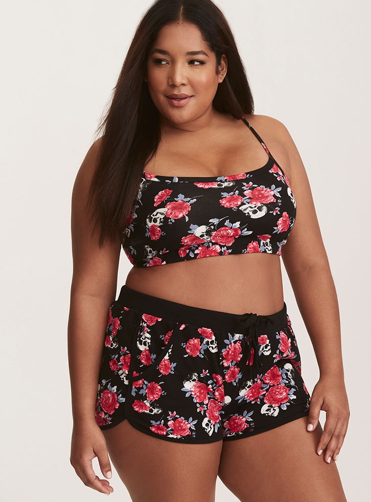 Hawaii plus size two piece bikini set featuring floral printed panel, a tank swim top with cropped length, padded cups, adjustable straps over shoulder with racerback design, a pair of high waist bikini bottom in moderate coverage and drawstring waistband.