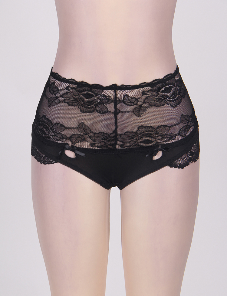 Plus Size High Waist Strappy Floral Black Lace Panty