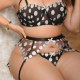 Turn heads in this cheeky black-and-white polka dot three-piece set designed for curves that command attention. The soft bra features sheer mesh panels dotted with shiny silver circles, finished with a sweet bow at the center. The matching garter belt wraps around your waist and adjustable straps— perfect for adding drama or pairing with stockings. Stretchy fabric moves with you, while the retro-inspired print brings fun, flirty energy to any night in (or out). Made to celebrate your shape without holding back.