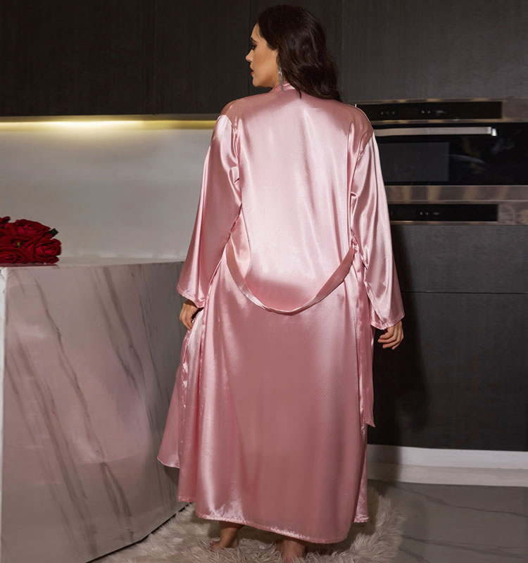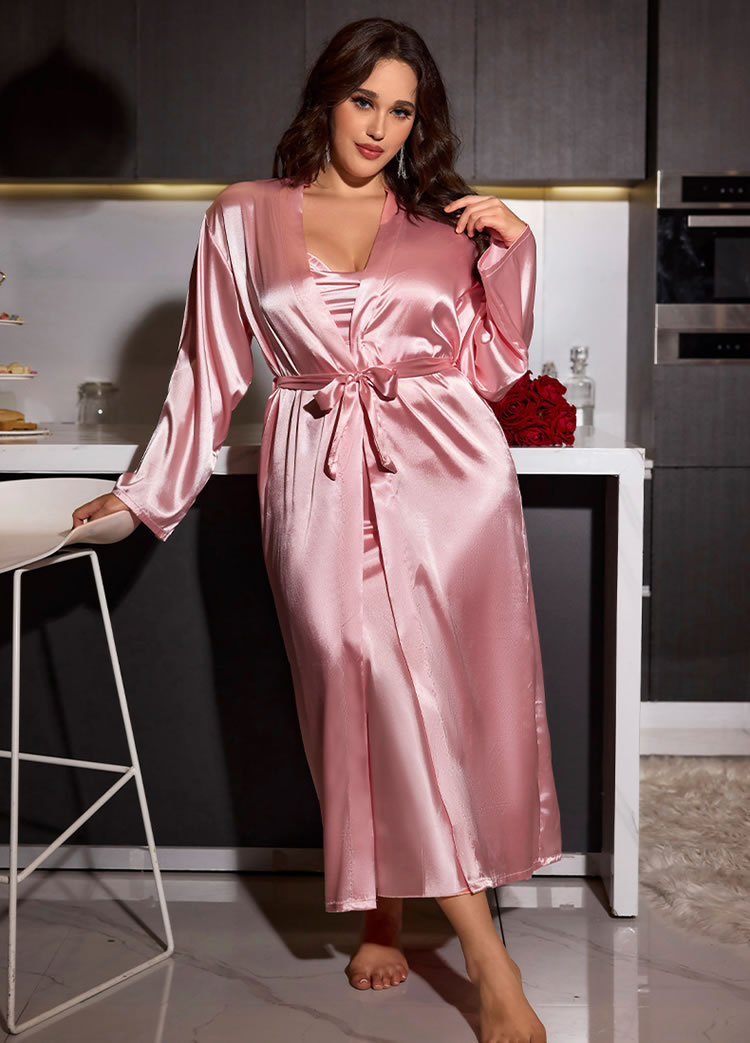 Elevate your intimate wardrobe with this seductive pink satin robe and slip dress set. The robe is designed with a timeless silhouette, complete with a tie waist to accentuate your figure. The slip dress underneath is made from the same high-quality satin, providing a seamless and seductive feel. This set is ideal for both everyday comfort and romantic evenings.