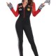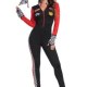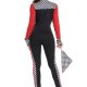 Channel your inner pit crew star in this dynamic racing suit costume. Featuring a tight-fit design with a high collar and long sleeves, it combines black fabric with vibrant red accents and classic checkered detailing down the legs. The front zip closure and printed sponsor-style logos give it a realistic motorsport vibe. Whether you're cheering on the racers or stealing the spotlight, this ensemble delivers bold energy and confidence. ( Checkered flag not included )