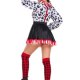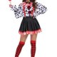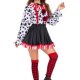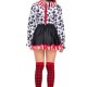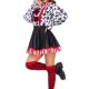 Step into the spotlight with this playful and eye-catching clown-inspired costume, featuring a long-sleeve shirt printed with whimsical black moon and dot patterns on a white background. The outfit includes a flared black skirt with red-and-white striped trim, red suspenders for added charm. It’s perfect for Halloween, themed parties, or theatrical performances. (Knee-high socks and a tiny red hat not included.)