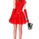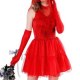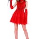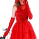 Make a striking statement with this bold red bride costume that turns traditional wedding attire into a daring fashion statement. Featuring a fitted bodice with a high neck and deep V-cut, it's paired with a flirty layered tulle skirt that adds playful volume. The ensemble includes a matching red lace veil, long gloves. Perfect for Halloween, themed parties, or cosplay, this outfit blends romance with rebellion. ( Fishnet stockings not included)