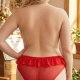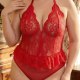 Turn up the heat with this bold red lace bodysuit designed for the plus-size figure. This all-in-one piece features a deep plunging neckline and halter straps that frame the décolletage beautifully. The sheer floral lace fabric offers a peekaboo effect, while the ruffled hem at the waist adds a feminine, flirty touch. Designed with comfort in mind, the stretchy mesh ensures a smooth fit that moves with you, making it perfect for feeling confident and sexy.
