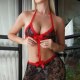 Celebrate the holidays in style with this red and black lingerie that blends festive flair with daring design. The halter top features a deep V-neckline with a black satin bow at the center, while the high-waisted shorts showcase intricate lace patterns with a matching black trim. Perfect for themed parties, Christmas gatherings, or adding a cheeky touch to your seasonal wardrobe.