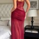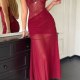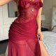 This deep red lingerie dress blends soft transparency with bold shaping for a striking silhouette. The top features a lace panel with ruffled edges and a central pendant detail, supported by thin adjustable straps. The skirt drapes in layers with a ruched waistline that adds volume and movement, making it both flattering and eye-catching. Ideal for those who want to express confidence and charm in one piece.