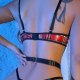 Make a statement with this daring red plaid lingerie set that blends retro patterns with modern edge. Featuring a structured bra with sleek black trim and metallic accents, it pairs perfectly with a matching thong and waist belt for a cohesive look. The adjustable straps and garter-style leg attachments add both function and flair, making it ideal for those who love bold fashion with a touch of rebellion.
