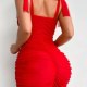 Make a bold statement with this striking red ruched lingerie dress that blends drama and sensuality. Featuring a sweetheart neckline with a central bow, the dress hugs your curves in all the right places, accentuating your silhouette with vertical pleats. The shoulder ties add a playful touch, while the attached garter straps offer a classic, flirtatious finish. Designed for confidence and charm, it’s perfect for special moments or turning heads at a night out.