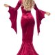 Step into the shadows with this dramatic red velvet gown that blends gothic elegance with a touch of fantasy. Featuring a form-fitting silhouette that flares into a mermaid-style hem, the dress is designed to make a bold statement. The long bat-wing sleeves add a mysterious flair, perfect for Halloween, themed parties, or theatrical performances. With its deep red hue and textured fabric, this costume captures the essence of a dark enchantress or vampire queen.