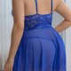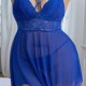 This bold blue plus-size lingerie dress blends romance and modern flair in one striking design. The top features a lace-trimmed bustier with a deep V-neckline and crisscross straps that meet at a delicate heart-shaped accent, adding a touch of sweetness. A soft lace waistband separates the structured bodice from the flowing mesh skirt, which drapes elegantly with an asymmetrical hem. Designed to flatter full figures, it combines support with movement, making it perfect for intimate evenings or as a statement piece in your loungewear collection.