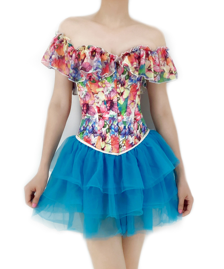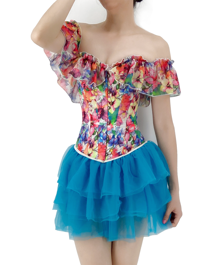 Ruffled Puff Sleeves Vintage Corset With Mini Tutu Skirt