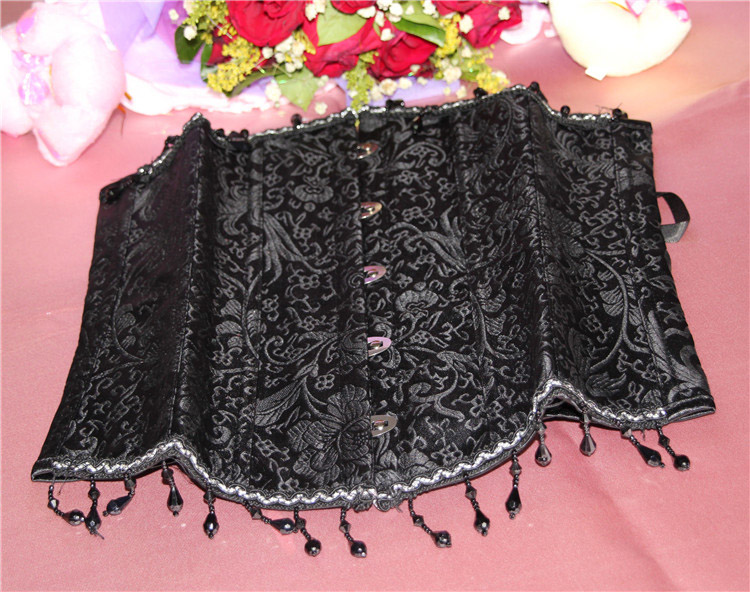 The Satin & Jacquard Underbust Corset features jacquard style, steel busk closure at front and lace-up back. Effective in waist line reduction.
