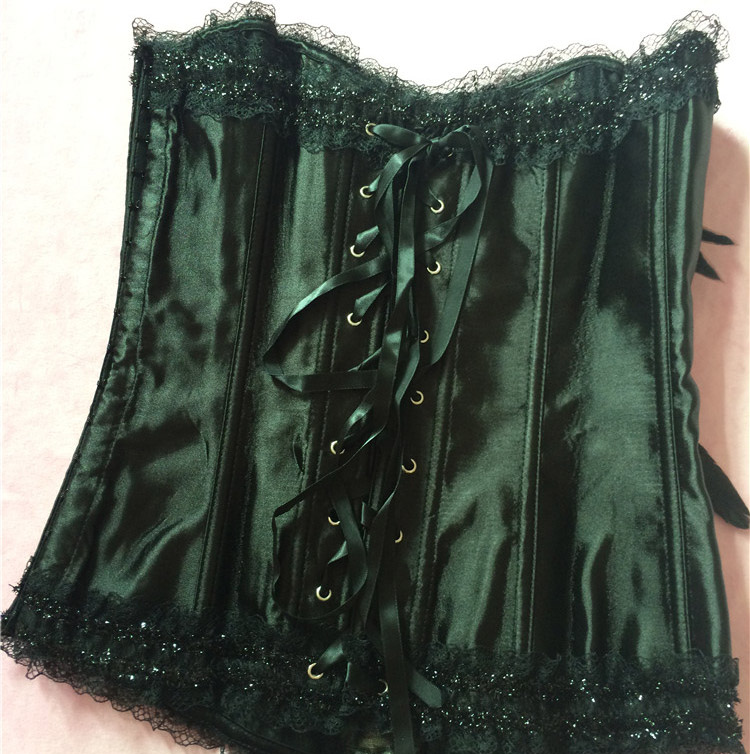 This Satin White And Black Lace Strapless Corset features Black feather details front, side hook and eye closure and lace-up back. Dress is not included