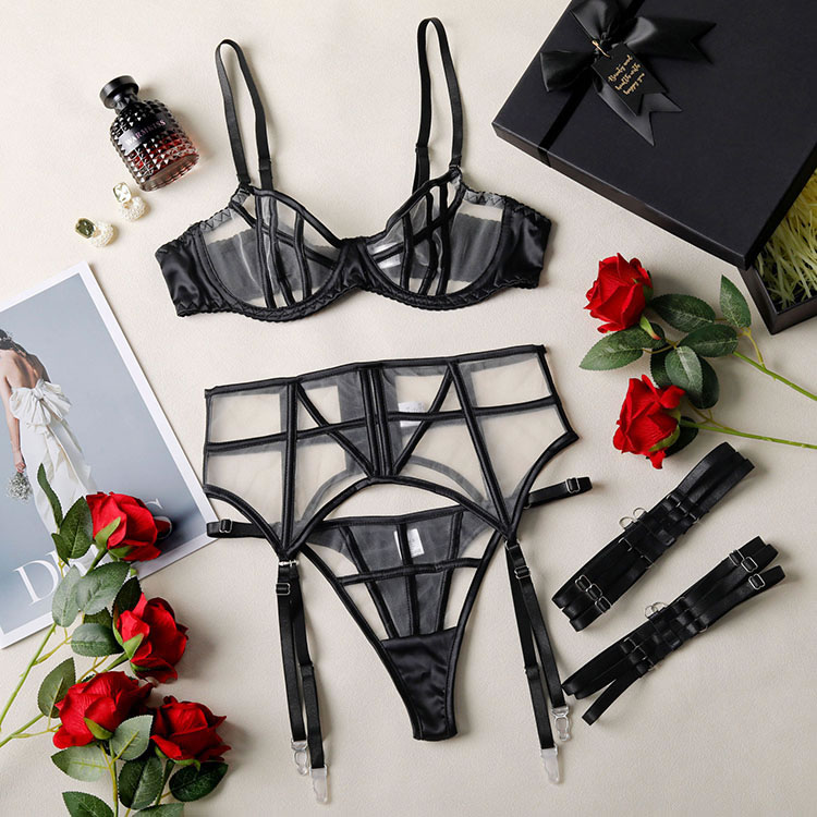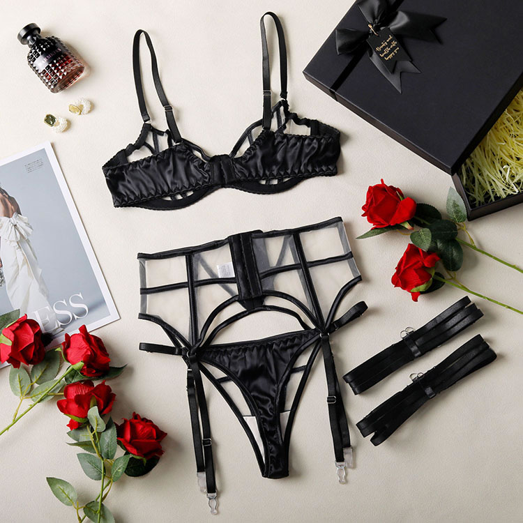 Make a statement with this bold black cage lingerie set that combines style and sensuality. The intricate cage design accentuates your curves, while the adjustable straps ensure a perfect fit. The garter belts add a touch of vintage charm, making it ideal for those who want to feel both confident and alluring. Perfect for intimate evenings or special occasions, this lingerie set is a must-have for anyone seeking to embrace their unique style.