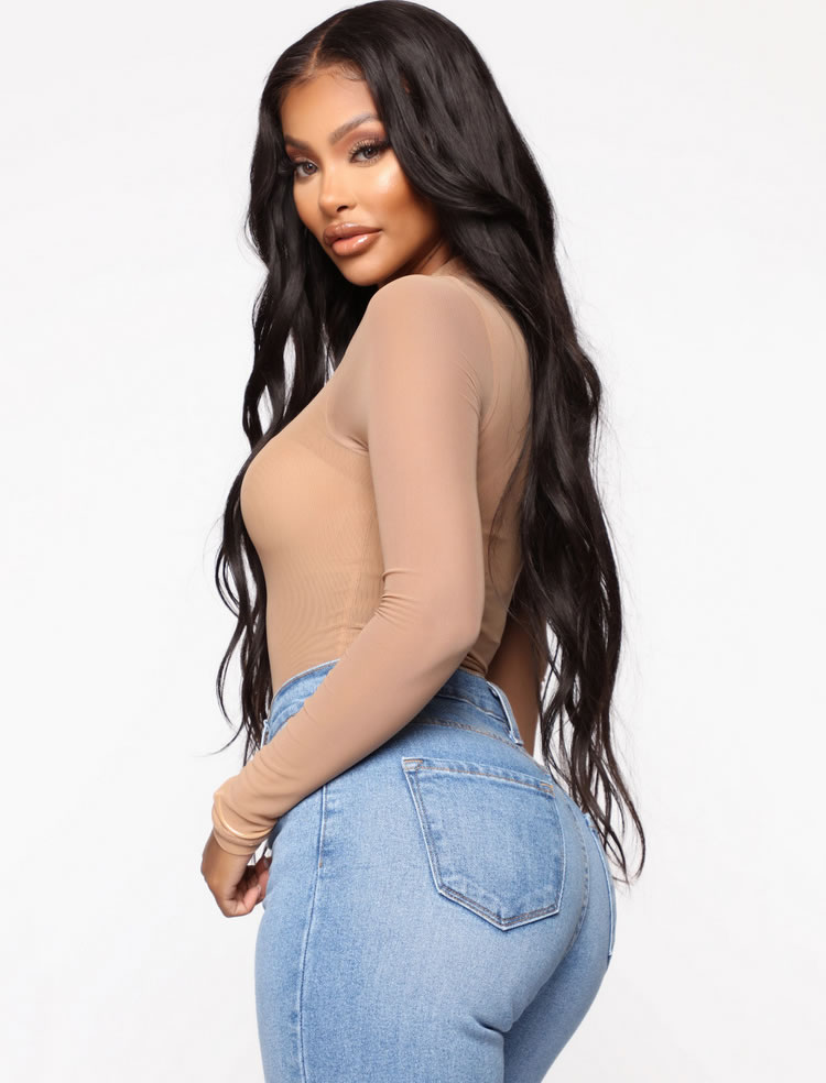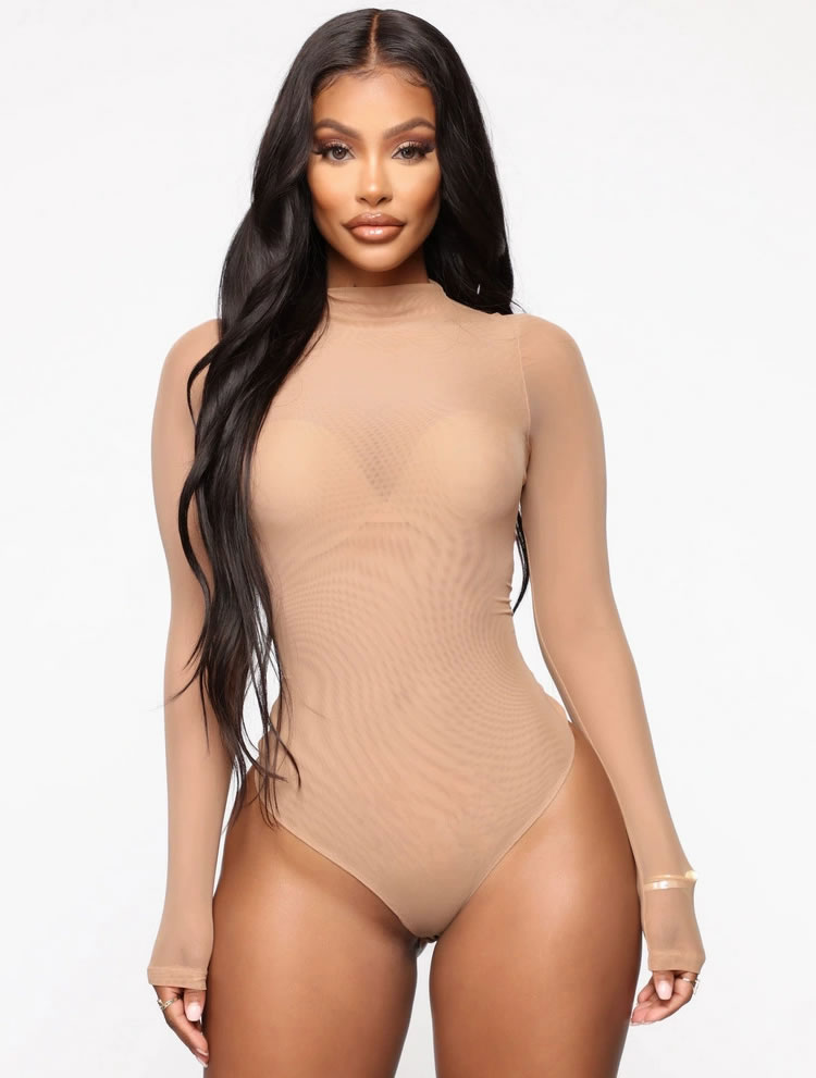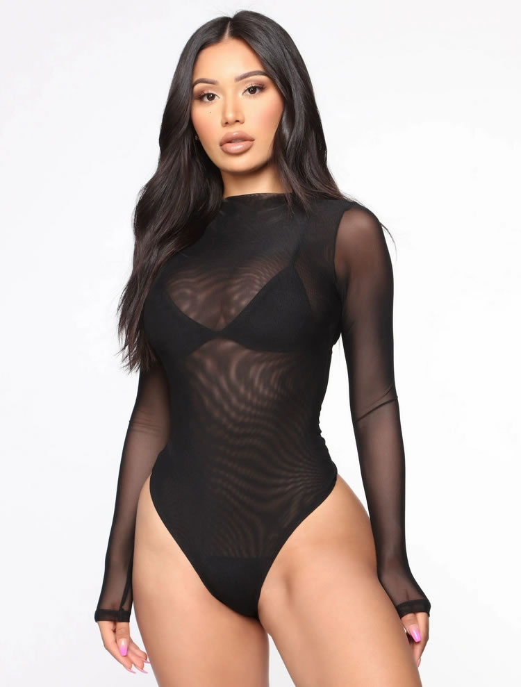 Elevate your lingerie collection with this seductive sheer long-sleeve bodysuit. The high neckline and form-fitting design create a sleek and elegant look, while the sheer material adds a touch of mystery. The bodysuit is ideal for anyone looking to add a bit of drama and sophistication to their sleepwear or loungewear.