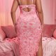 Float through the night in this blush-pink floral slip dress made for curves that glow. The sheer mesh fabric is printed with romantic roses in varying shades of pink, while ruffled straps and a matching ruffle-trimmed asymmetrical hem add playful texture. A high side slit lets you move freely — and show off just enough — and the back cutout adds a subtle surprise. Adjustable spaghetti straps ensure a custom fit, and the lightweight material drapes gently over your shape. Perfect for self-care nights, cozy mornings, or whenever you want to feel like a walking daydream.