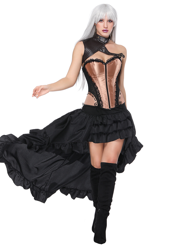 The steampunk corset high low skirt set is suitable for Steampunk-themed, Night Out Dancing, Halloween Party or Other Occasions.