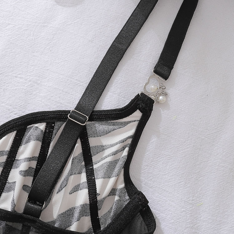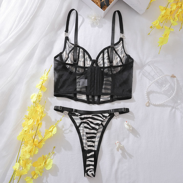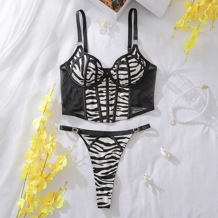 This bold zebra print lingerie set is a striking choice for those who love to make a statement. The bra features intricate zebra print detailing that adds a touch of drama and allure, while the matching thong ensures both style and support. The zebra print creates an eye-catching silhouette, making it perfect for anyone seeking a blend of confidence and charm in their intimates.